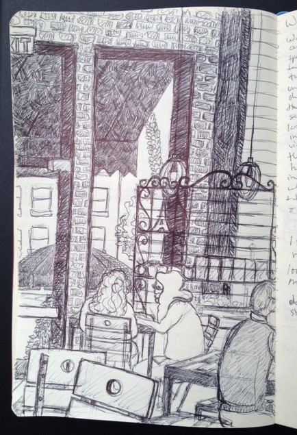 A few weeks ago, I went to the conference of the Association of Writers and Writing Programs in Los Angeles. I attended some great panels, learned a lot at the book fair, found some exciting new reads, and spent time with friends that I needed to see more than I’d known. But perhaps the best part of my time in LA was the two and a half hours I spent drawing in a café. I went in for the chocolate braid and coffee, but I stayed for the drawing that absolutely compelled me to keep my seat despite the sunshine and palm trees. For a while it was a sketch I could have walked away from, but at some point (what was that point?) I was in so deep that I felt like a rock in the river of time, immune to the current and totally absorbed in the present moment, which was so much more than a moment because it contained within itself the past and future of the drawing as well—what it had been, what it would be, and what it was becoming. You probably know what I mean.