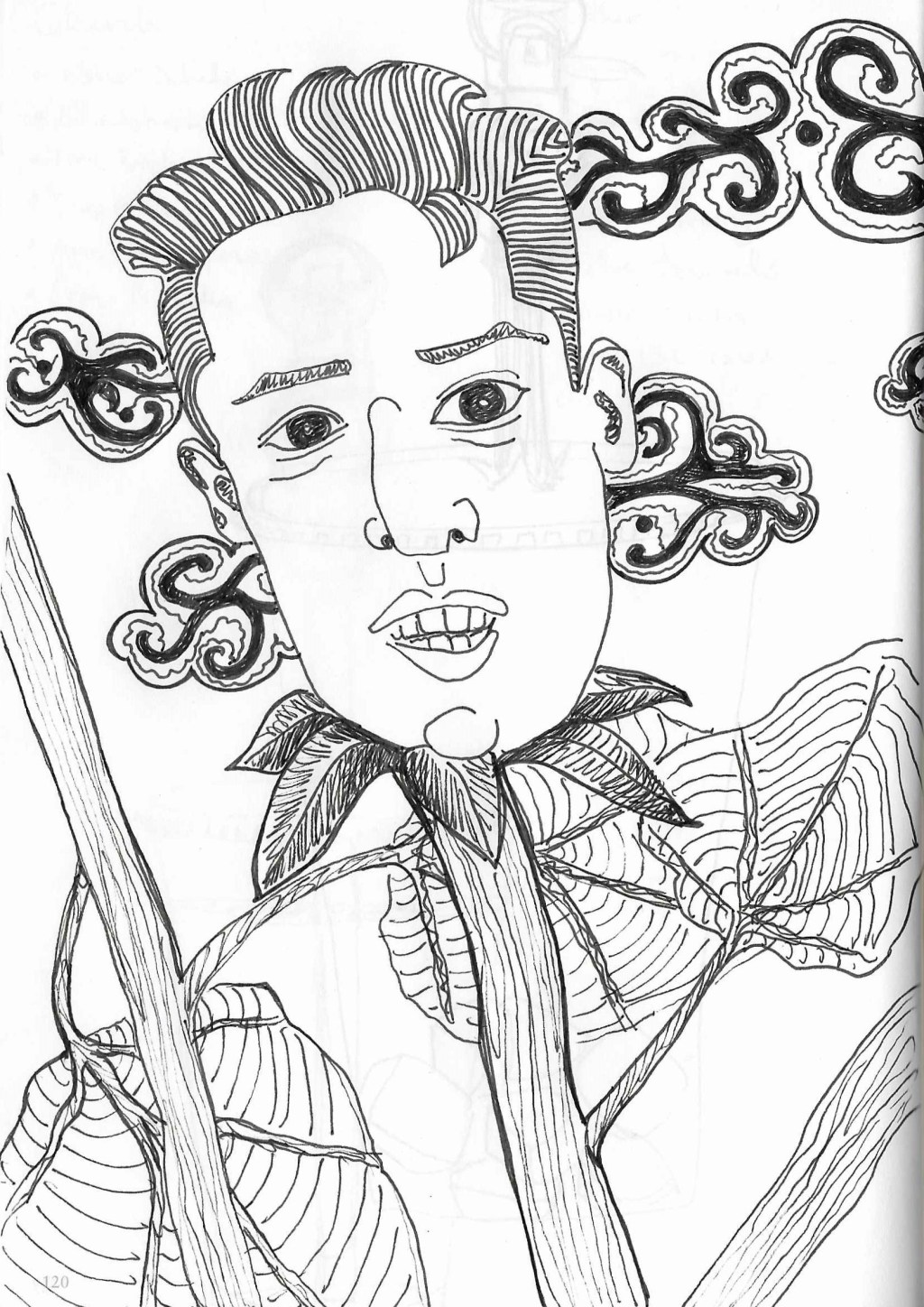 A few days later I tried again.  A face from a magazine sprouted a stem.  The stem sprouted a leaf that required another leaf, which would require another stem.  Was I going to do this?  It looked nothing like a Galeano hybrid, sharp and self-contained.  Should I turn the page and try again?